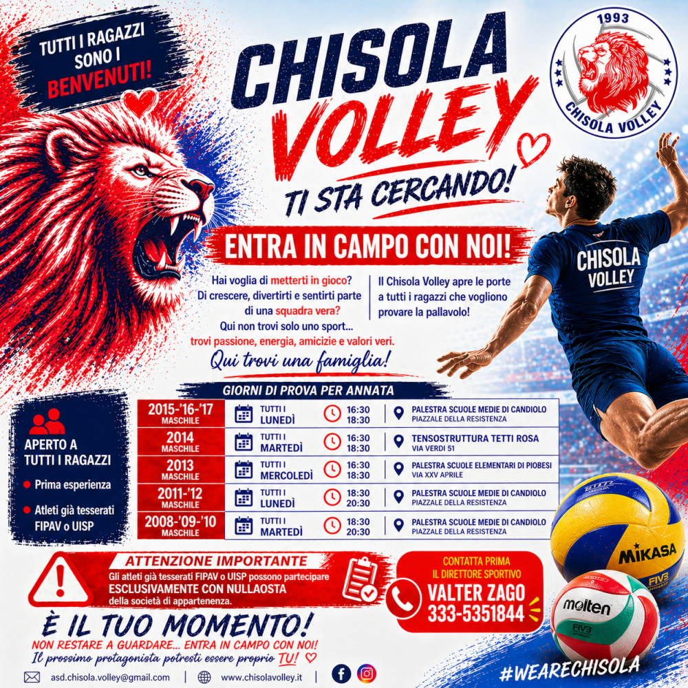 Contattaci e vieni a scoprire cosa significa essere Chisola Volley: VALTER ZAGO 3335351844